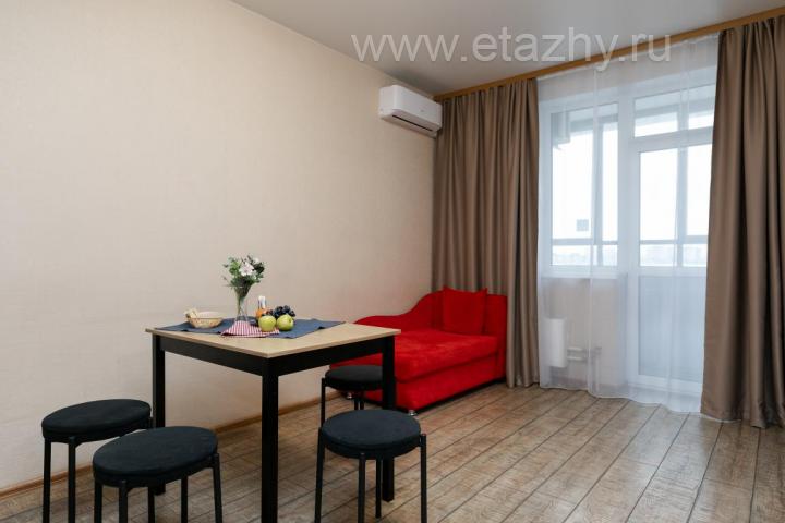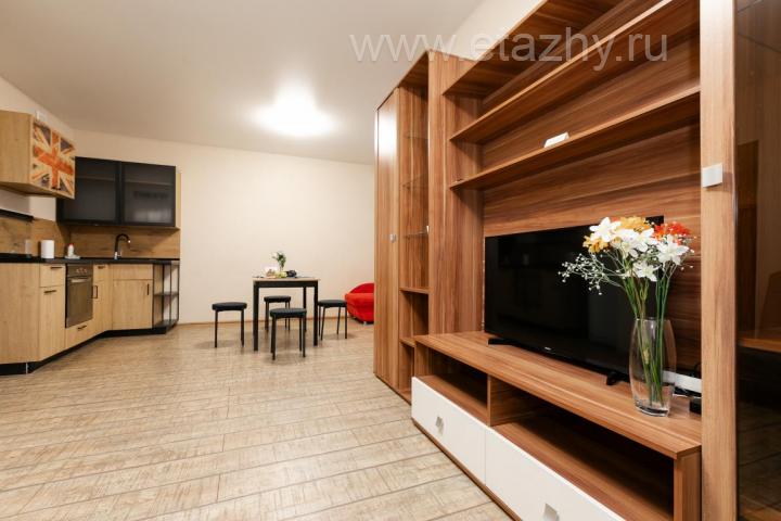 Район удобный, чистота в квартире, весь необходимый инвентарь, посуда, техника есть